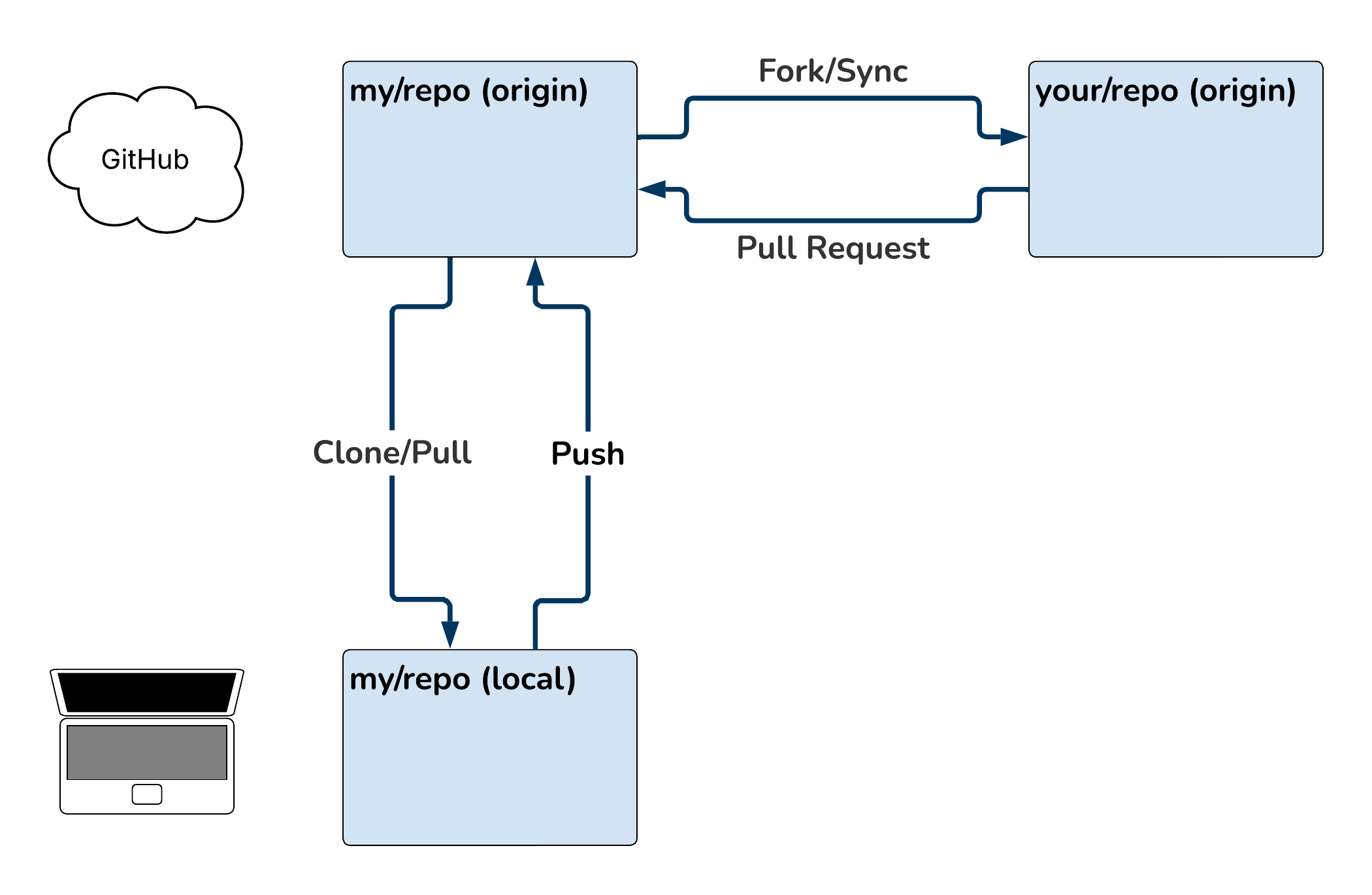 Fork/Pull Request is a project management tool GitHub provides to help you manage code changes from multiple contributors.