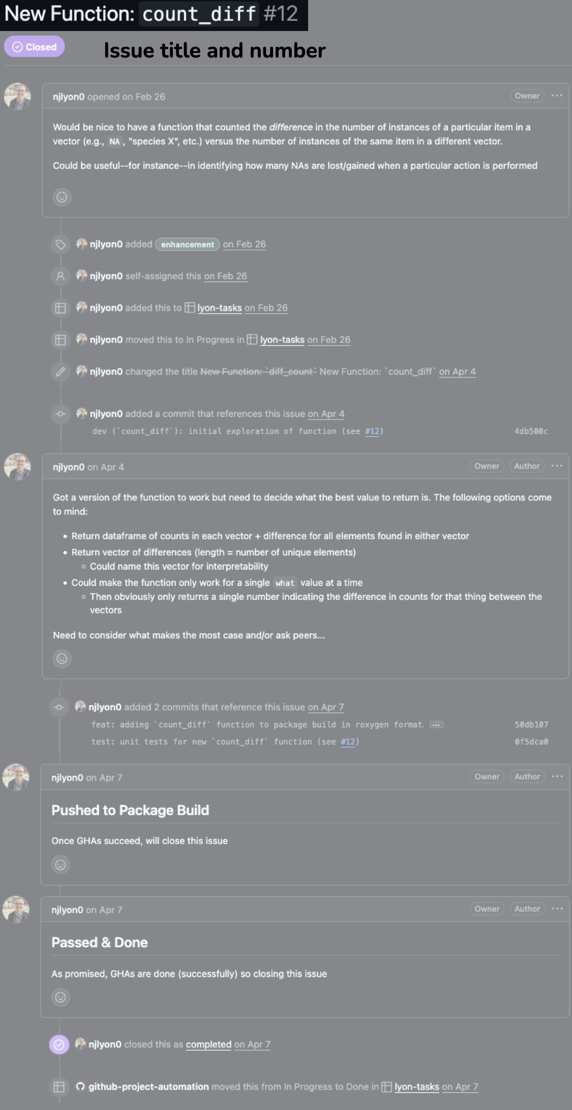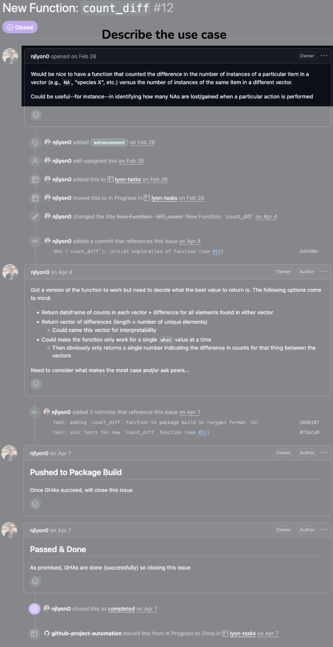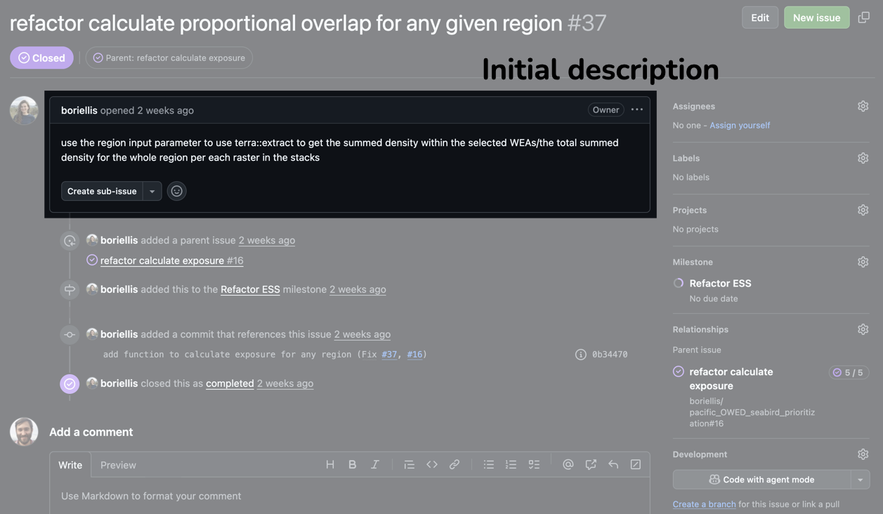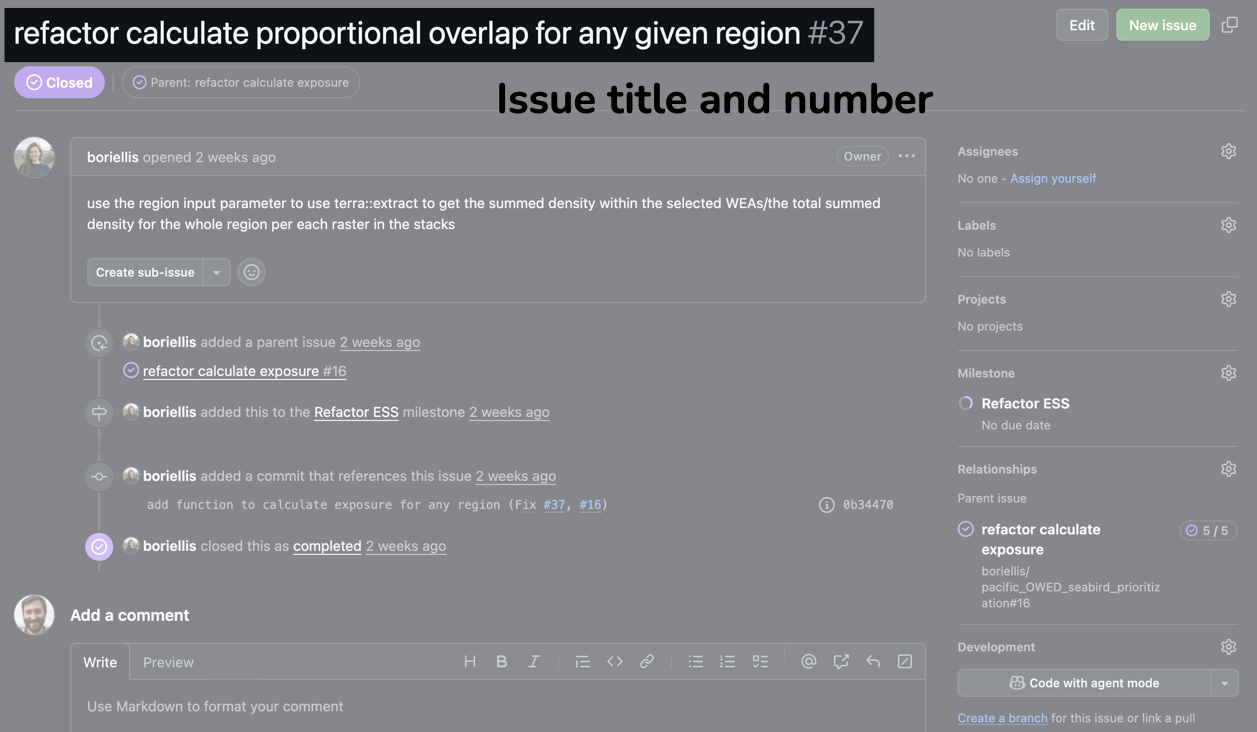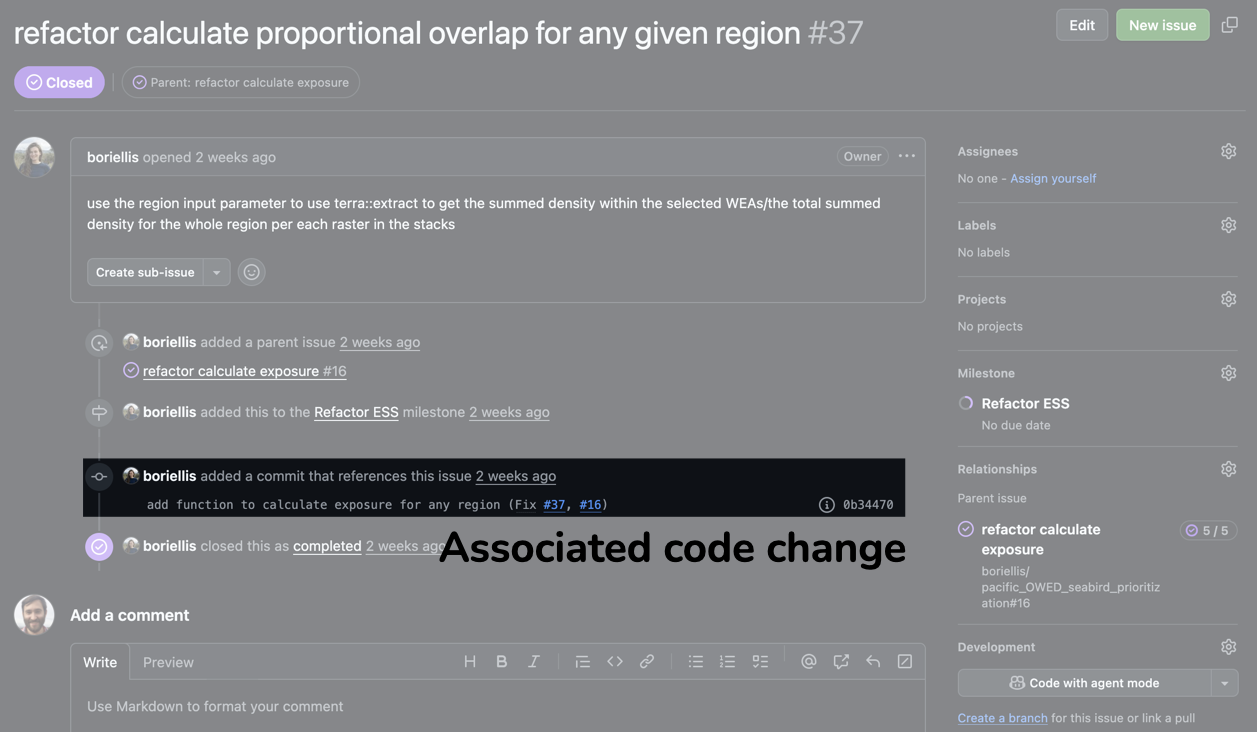 - Use Issues to describe, discuss, and track code changes