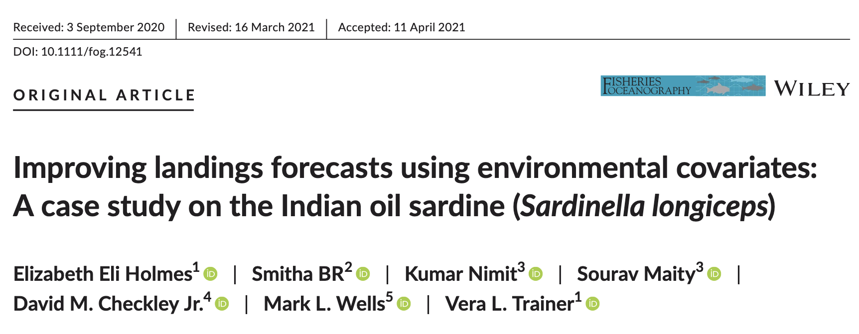 In 2020, Dr Holmes led a paper about forecasting sardine landings.